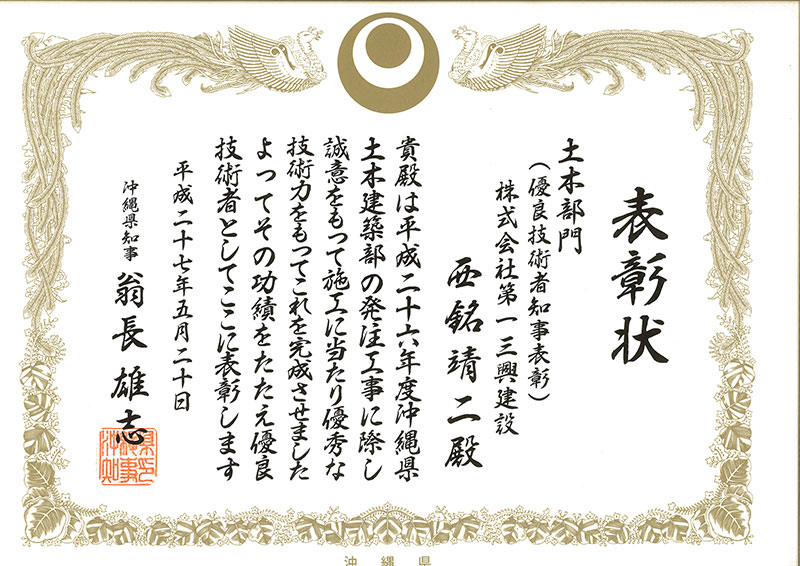| 平成17年度水釜地区舗装修繕その他工事【表彰工事】 | 沖縄総合事務局 | 2005.10.26〜2006.02.17 |